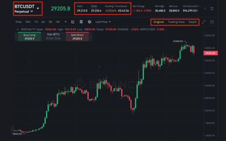 6、在【价格图表】模块,可以选择想要进行的合约交易、查看标记价格、查看预期资金费率以及查看当前的信息图表