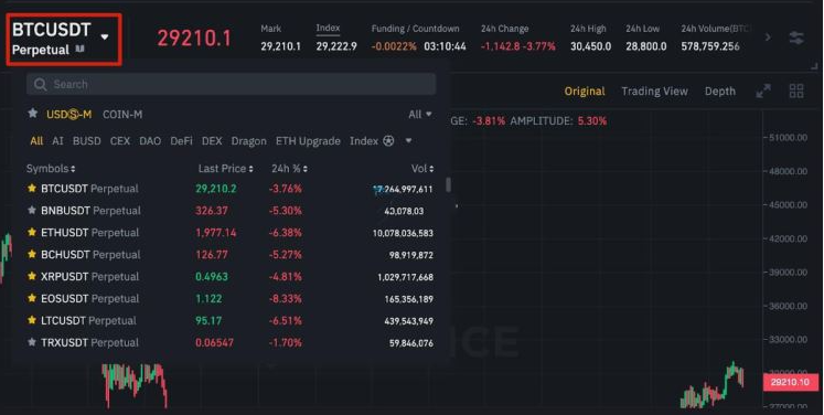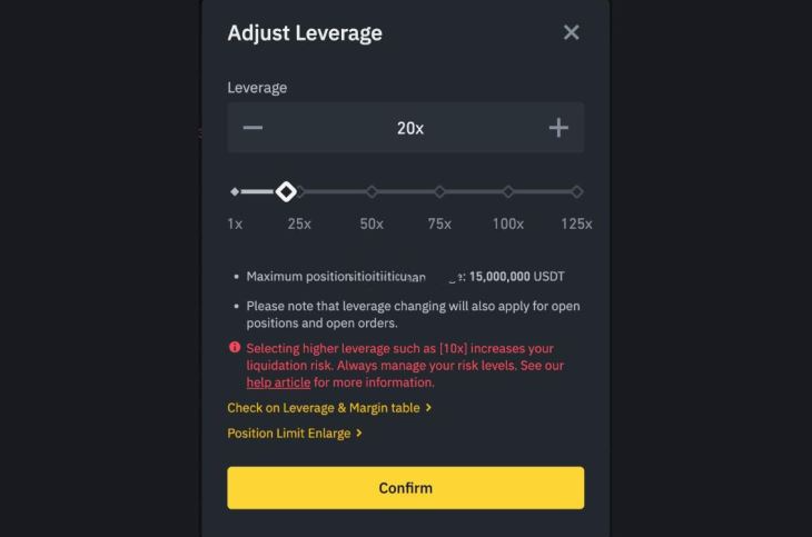 12、在币安合约,您可以手动调整每个合约的杠杆倍数。将鼠标移动在页面左上角并悬停在当前合约类别上(默认为BTCUSDT),即可选择特定合约。