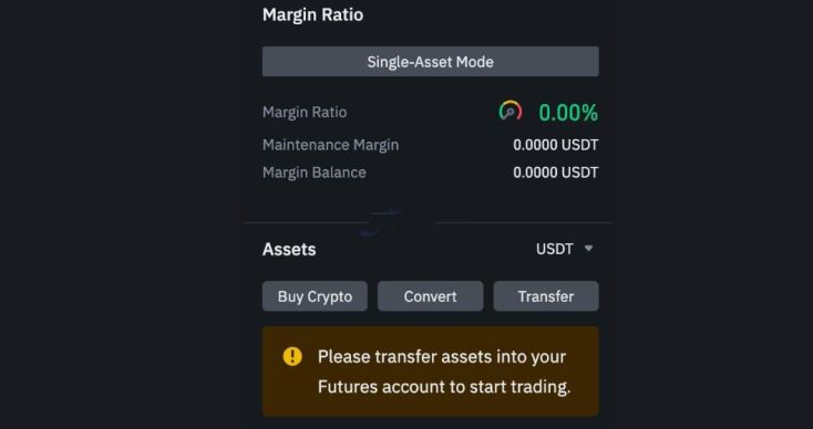 9、在【保证金概览】模块,您可以查看可用资产、划转以及购买更多加密货币。还可以查看与当前合约和所持仓位相关的信息。点击【划转】,即可在合约钱包和币安生态系统的其他账户之间灵活划转资金。