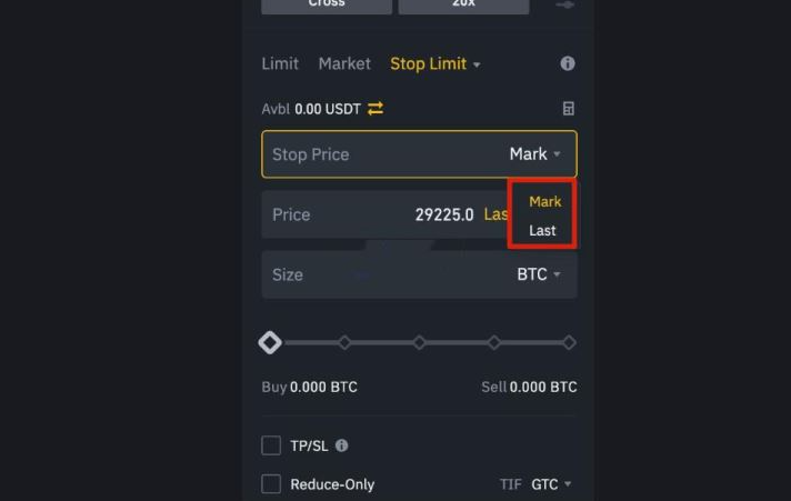 14、在设置使用止损价作为触发条件的订单类型时,可以选择将**价格或标记价格作为触发条件。为此,请在订单下达模块底部的【触发条件】下拉菜单中选择要使用的价格。