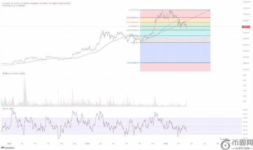 截至今日,比特币价格在过去几周内表现出较大的波动性。如果价格跌破200天移动均线(一个被广泛关注的长期趋势指标)或前低点(如2024年某个关键支撑位),技术派可能会将其视为熊市信号。然而,单靠技术指标并不足以得出结论。比特币市场的周期性波动往往受到外部事件驱动,而非单纯的技术形态。