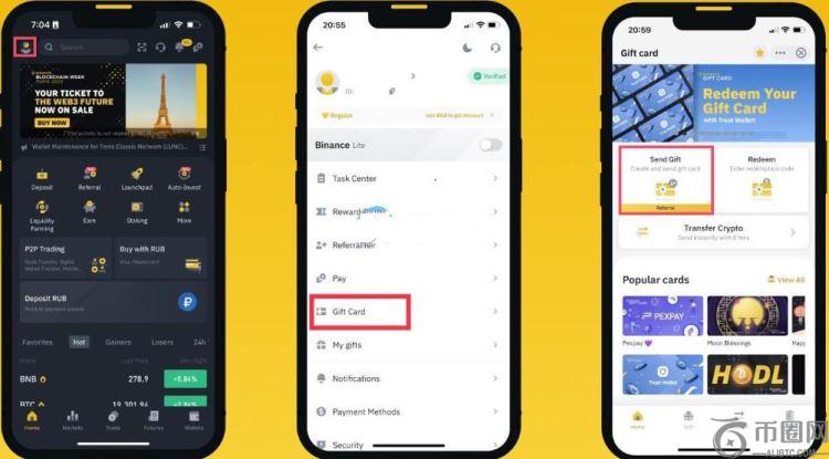 1、打开币安官网(点击注册),登录币安App,进入【个人资料】,点击【礼品卡】。然后,页面将跳转至礼品卡页面。然后点击【发送礼品】即可