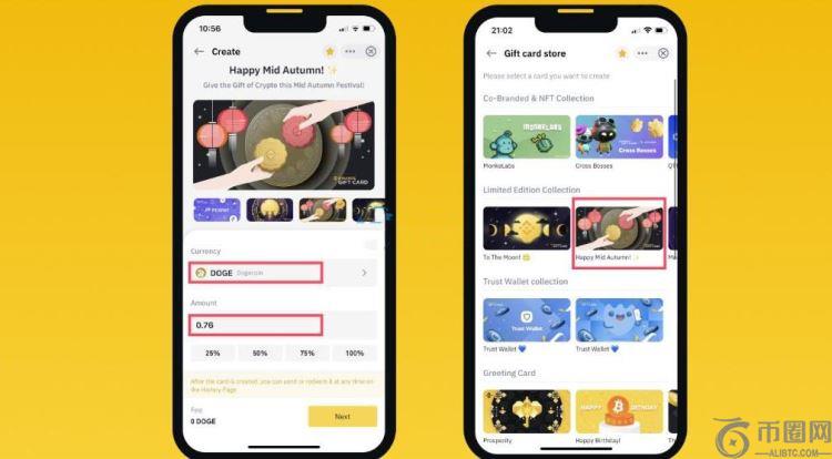 2、选择您要发送的加密货币和金额。您也可以挑选设计,定制您的礼品卡