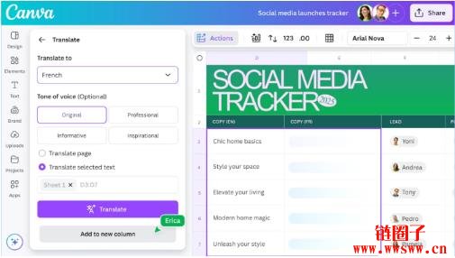 Canva 针对跨国团队与行销需求,推出「Translate」功能,一键即可批次将设计转换为多语版本。此外,「Magic Resize」则可将整套设计内容,自动套用不同平台尺寸比例,免去重新排版的烦恼。