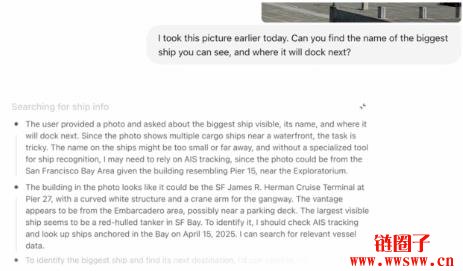 可要求 ChatGPT 对于照片中的港口船只进行辨识,并推理出相关资讯