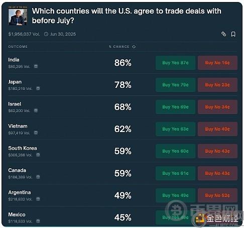 届时,美国会与盟友和贸易伙伴达成积极的贸易协议吗?**会像特朗普希望的那样屈服,**达成一项重大协议吗?还是美国经济状况会糟糕到特朗普不得不改弦更张?所有这些都是可能的,如果你是一个赌徒,那么所有这些结果都有Polymarkets(多市场)可供选择。