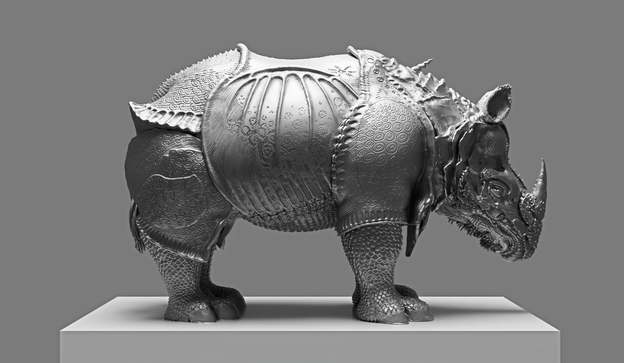 阿尔布雷希特·丢勒的标志性作品(1515 年)“犀牛”被 Asprey Studio 重新诠释为一套 11 件纯银雕塑,每件雕塑都将与数字铭文一起出售比特币区块链。