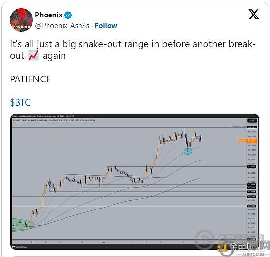 “如果我们能继续盘整,那么我们期待更多的上涨空间,因为盘整=趋势的延续。是的,我的宏观观点认为$BTC牛市即将结束,但短期内仍有上涨空间,”他告诉X的粉丝们。