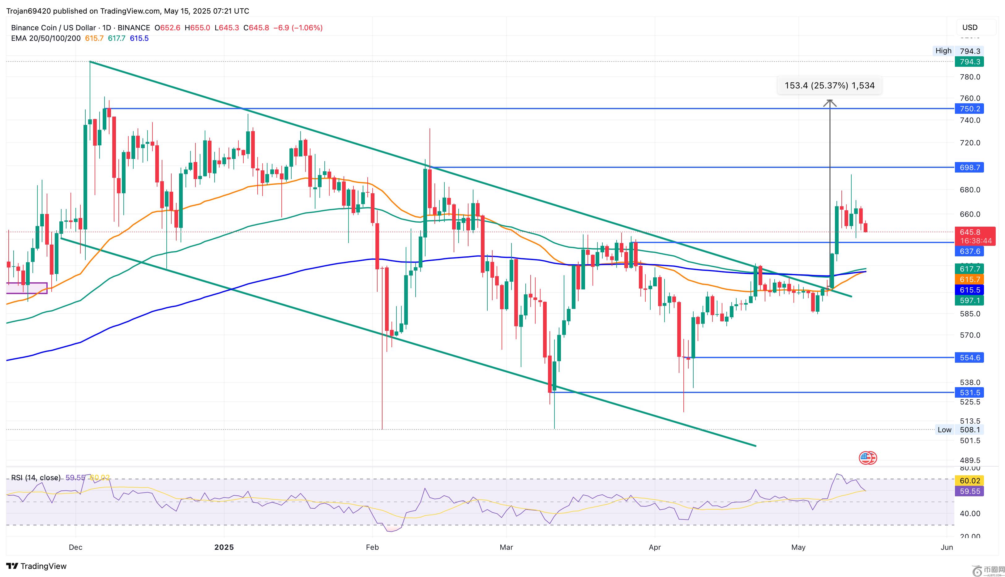 文章标题:币安币(BNB)涨势停滞,守住 637 美元支撑位:仍有可能反弹至 758 美元吗?