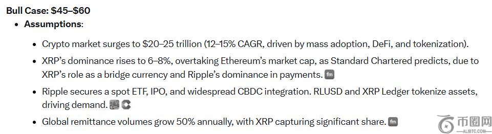 Grok AI 建立了预报因素包括 XRP 的 1400 亿美元市值、Ripple 与多家金融机构的现有合作关系以及即将实现的 1000 亿**供应的**流通。