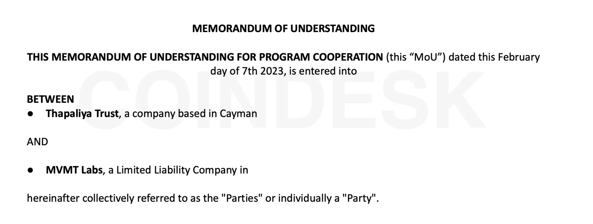 Parekh 的协议也采用了谅解备忘录的形式,其中的终止条款要求双方同意。然而,Parekh 和 Movement Labs 将这些协议标记为探索性协议,并声称双方从未进行过资金交易。