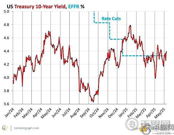 通胀与货币政策:10年期国债收益率是通胀预期的晴雨表。如果收益率因投资者预期通胀上升而上升,美联储等央行可能会加息,从而收紧全球流动性。这可能会减少对加密货币等资产的投机性投资,就像2022年激进加息导致市场降温时所看到的那样。