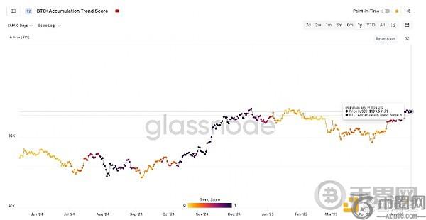 比特币累积趋势得分。资料