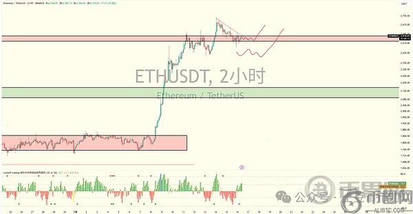 以太坊跌破2600后持续下跌,昨日触及2403附近开始反弹,**符合我昨天的预测。目前,ETH在2600面临短期压力,突破后或有冲高但涨幅有限,需要震荡蓄力。