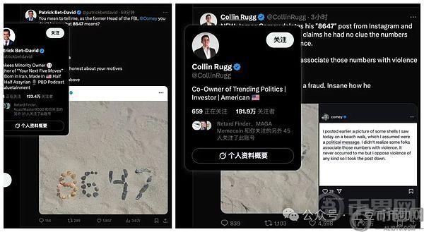 还有个,今天外网8647的热度起的挺快的,过去一两个小时还有不少几百万的粉丝在跟进这件事,包括 elonmusk经常互动的 IfindRetards等账号都发表了看法。