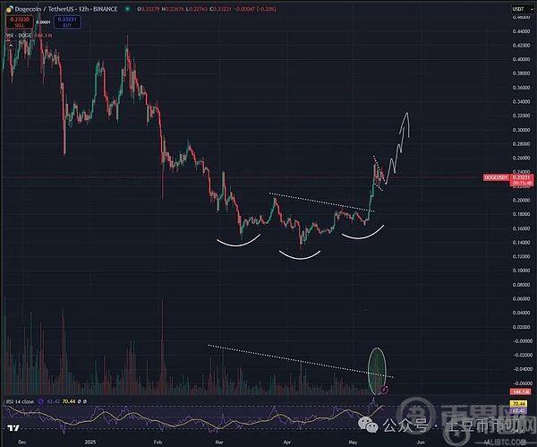 狗狗币(DOGE)暴涨78%后短暂回调,0.32只是起点,倒头肩形态预示百倍牛市!