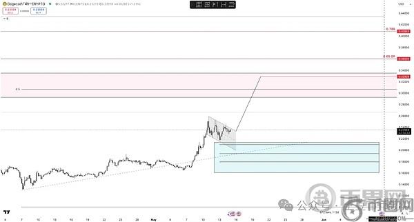 TSG 强调,如果旗形突破失败,0.20美元将是关键防守位,而下方0.16-0.21美元的需求区与上升趋势线将提供强力支撑。
