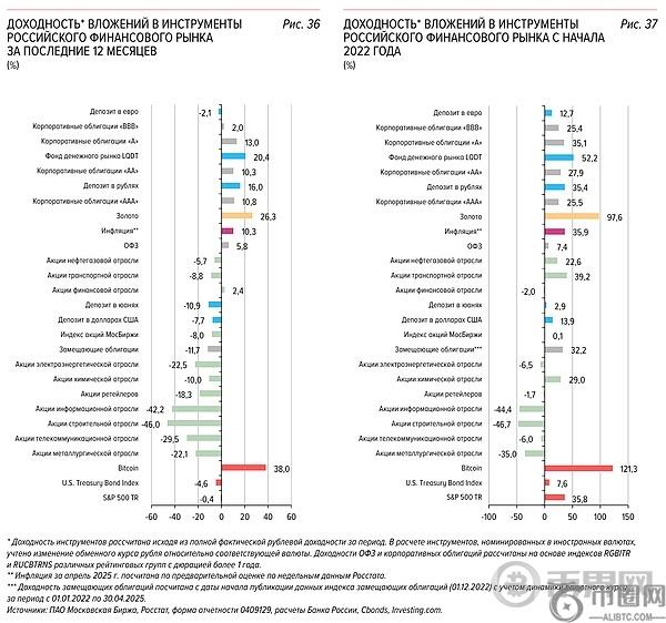 报告对各类资产的回报率进行了**比较,涵盖黄金到俄罗斯联邦债券(OFZ),以及特定行业的股票。