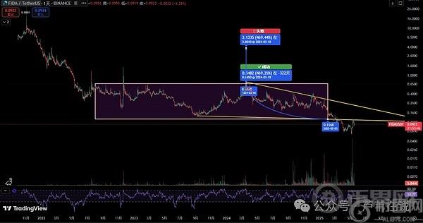 理由:短线上的风险,可能会走下降三角形,反压不过就直接去了;个人比较倾向于走箱型整理,可以等拉回后再进。且底部由量缩转量增,下降三角形剧本概率偏低,但也要做好应对。入场价:0.12止损价:0.1005目标价:3.8预计涨幅:3066%