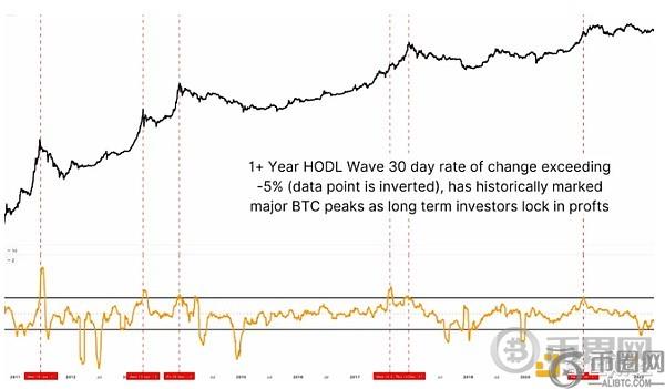 图4:一年以上持币观望浪潮的变化率表明,市场对未来比特币价格充满信心。