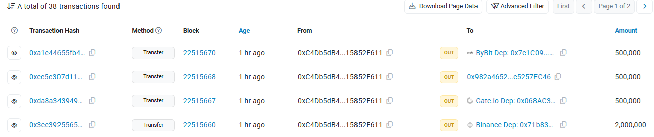 总体而言,被确认属于该团队的钱包已向交易所转移了 2131 万 LDO,价值 2126 万美元。