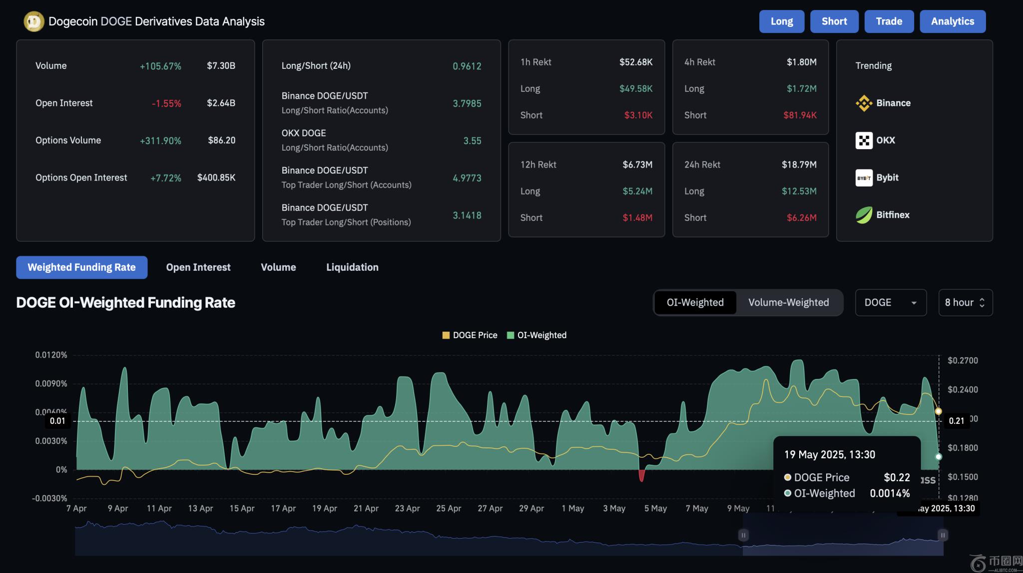 多头清算金额超过 1200 万美元,狗狗币期货前景黯淡