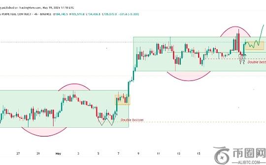 区间高点(97,900 美元和 107,144 美元)形成后,出现了双底。