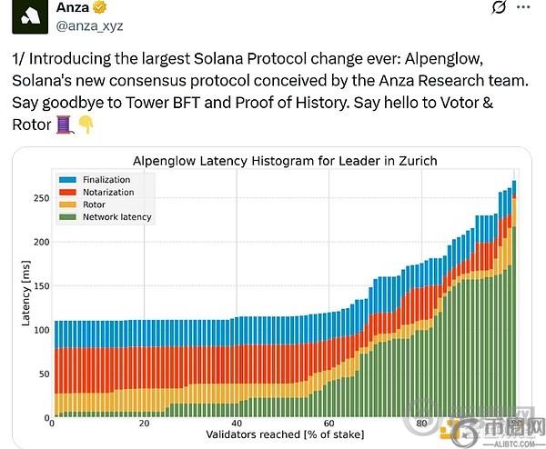 从 Solana Labs 分拆出来的 Solana 区块链基础设施公司 Anza 提出了一种名为 Alpenglow 的全新权益证明 (PoS) 共识机制,并声称这将是“Solana 核心协议的**变革”,并将与现有互联网基础设施展开竞争。