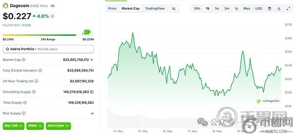 狗狗币近期强劲上涨后本周大幅下跌,从0.25美元跌至0.21美元。虽5月17-18日短暂反弹至0.23美元以上,但未能持续。截至今日,DOGE价格近0.23美元,周跌10%。投资者关注宏观形势,盼长期信号**新涨势。