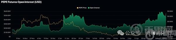 根据Coinglass 的数据,过去两周,PEPE 的未平仓合约飙升至历史新高,超过了就职典礼后的涨势水平,达到 5.83 亿美元。