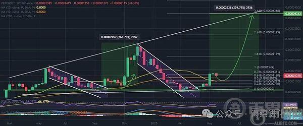 虽然今年实现 10 倍增长可能不现实,但如果历史重演,PEPE 的目标可能是飙升 230%,至 0.00042 美元。这一顶部与自 2024 年中期以来一直限制高点的长期阻力区一致。