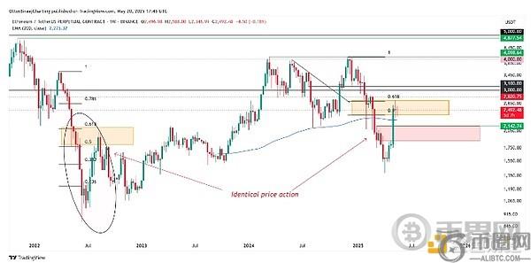 以太坊价格在斐波那契水平下方波动,也体现出一种与多头相反的看涨观点。有报道称,以太坊近期重新测试了0.5至0.618斐波那契水平,这可能引发以太坊的短期回调。