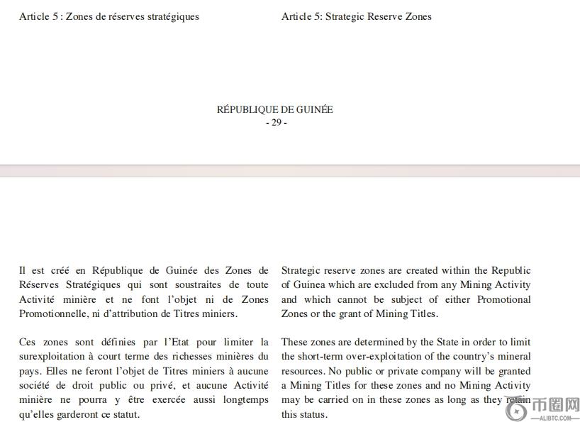 据几内亚媒体报道,在2025年5月20日周二晚间通过**电视台宣读的法令中,过渡当局决定将涉及铝土矿、铁矿、金矿、钻石和石墨的多个矿业权证——包括特许权、工业及半工业开采许可证以及探矿许可证——划定为战略储备区。该法令明确指出:"根据2025年5月16日第A/2025-480/MMG-SGG号法令撤销的铝土矿、铁矿、金矿、钻石、贱金属、宝石、黑砂和锰矿探矿许可证,同样依据《矿业法典》第5条划入战略储备区。"