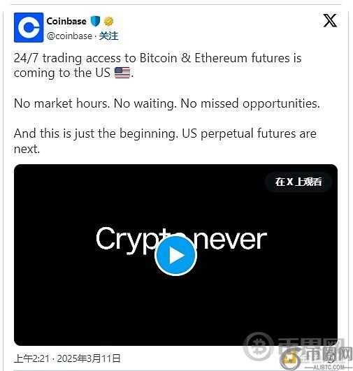 传统金融市场可能在周末关闭,但加密货币市场却**休市。为了顺应这一现实,并满**易者在“**休市”市场中的需求,Coinbase 最近成为**在 CFTC 注册的交易所,提供全天候 24/7 全天候受监管的 BTC 和 ETH 期货市场交易服务。