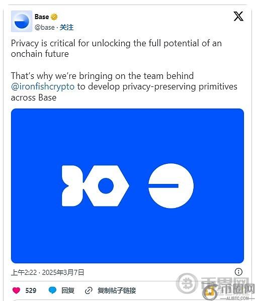 加密货币需要隐私。3 月 6 日,Coinbase 宣布已聘请 Iron Fish(一个零知识隐私层,可为透明链上的资产提供可选的隐私保护)背后的团队,领导 Base 内部的全新隐私团队,并通过开发隐私保护原语来加速网络隐私战略的实施。