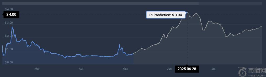 CoinCodex 分析师表示,Pi 币未来几周或将延续涨势。该平台预计该**将于 6 月 11 日突破 2 美元大关。CoinCodex 进一步预测,Pi 币将于 6 月 28 日攀升至 3.94 美元的历史新高。如果达到 3.94 美元的目标价,Pi 币的价格将上涨 386.43%。