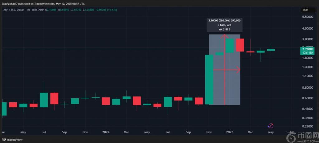 XRP 价格预测从 0.50 美元涨至 3.40 美元,涨幅达 580%,这体现了该**的爆发性潜力。如果 XRP 价格从目前的 2.34 美元水平复制这一涨幅,将上涨至 15.9 美元左右。这与瑞波币 (Ripple) 新闻报道中多位分析师的目标价一致。