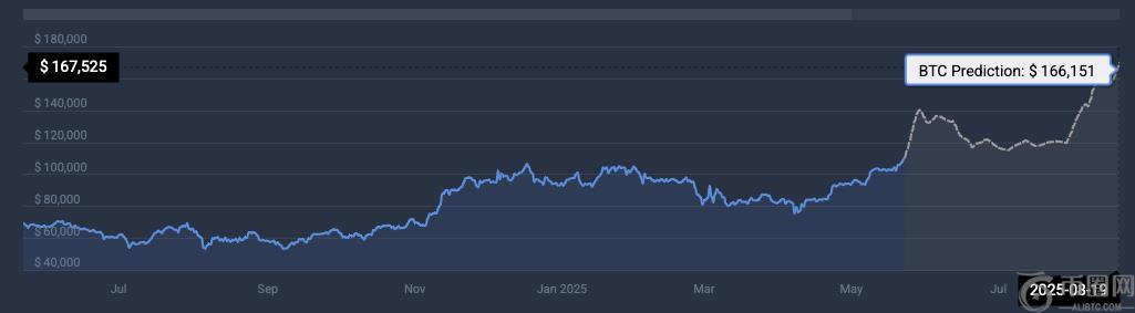 根据 CoinCodex 的分析,比特币 (BTC) 未来几周可能继续上涨。该平台预计,今年 8 月 19 日,BTC 交易价格将达到 166,151 美元。如果 BTC 达到 166,151 美元的目标价,其价格将上涨 49.13%。