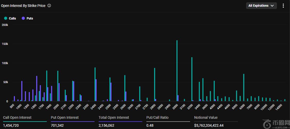 同时, Ethereum(ETH) 一直难以跟上比特币的发展势头。今天也有 202,000 份 ETH 期权到期,名义价值超过 5.43 亿美元。