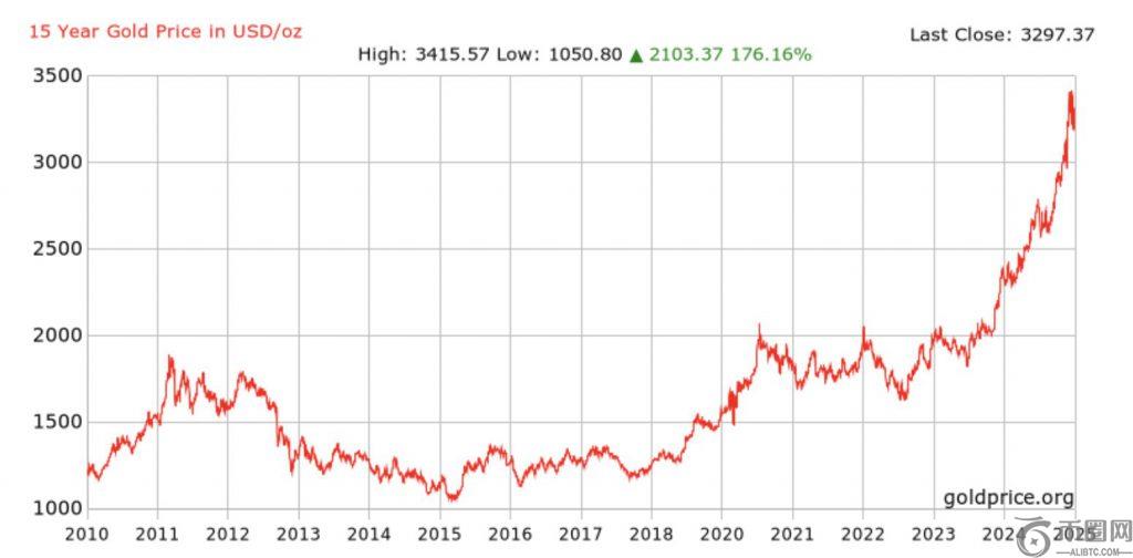 在过去15年中,比特币作为投资资产的表现远超黄金。2010年,比特币价格仅为0.08美元,当时投资2000美元购买比特币,如今价值已达27.8亿美元。同样,如果一位投资者在2010年投入2000美元购买黄金,他们就能获得1.67盎司黄金。如今,这1.67盎司黄金的价值为5548美元,而黄金价格目前为3329美元。