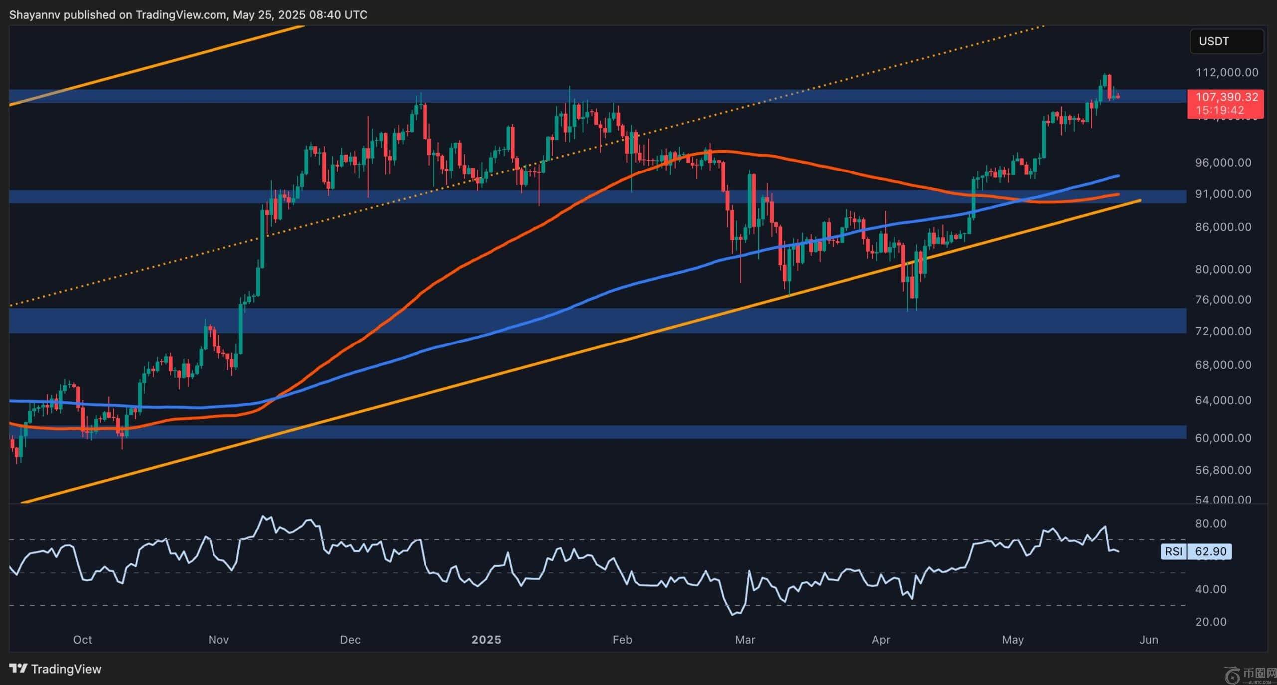 比特币已正式突破10.9万美元的历史高点,并在11.2万美元附近创下新高。这一突破凸显了强劲的买家兴趣,并凸显了持续推动本轮周期的看涨情绪。