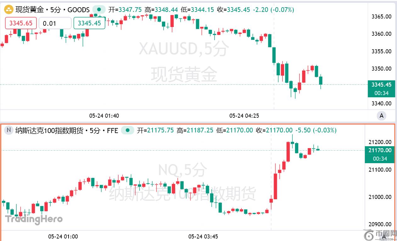 因时隔两日特朗普再对欧盟改口,延长与其的贸易谈判窗口,美股期货周一早盘涨幅扩大,纳指涨幅一度达1%。现货黄金持续走低,日内跌幅扩大至15美元,一度走低至3341美元/盎司。