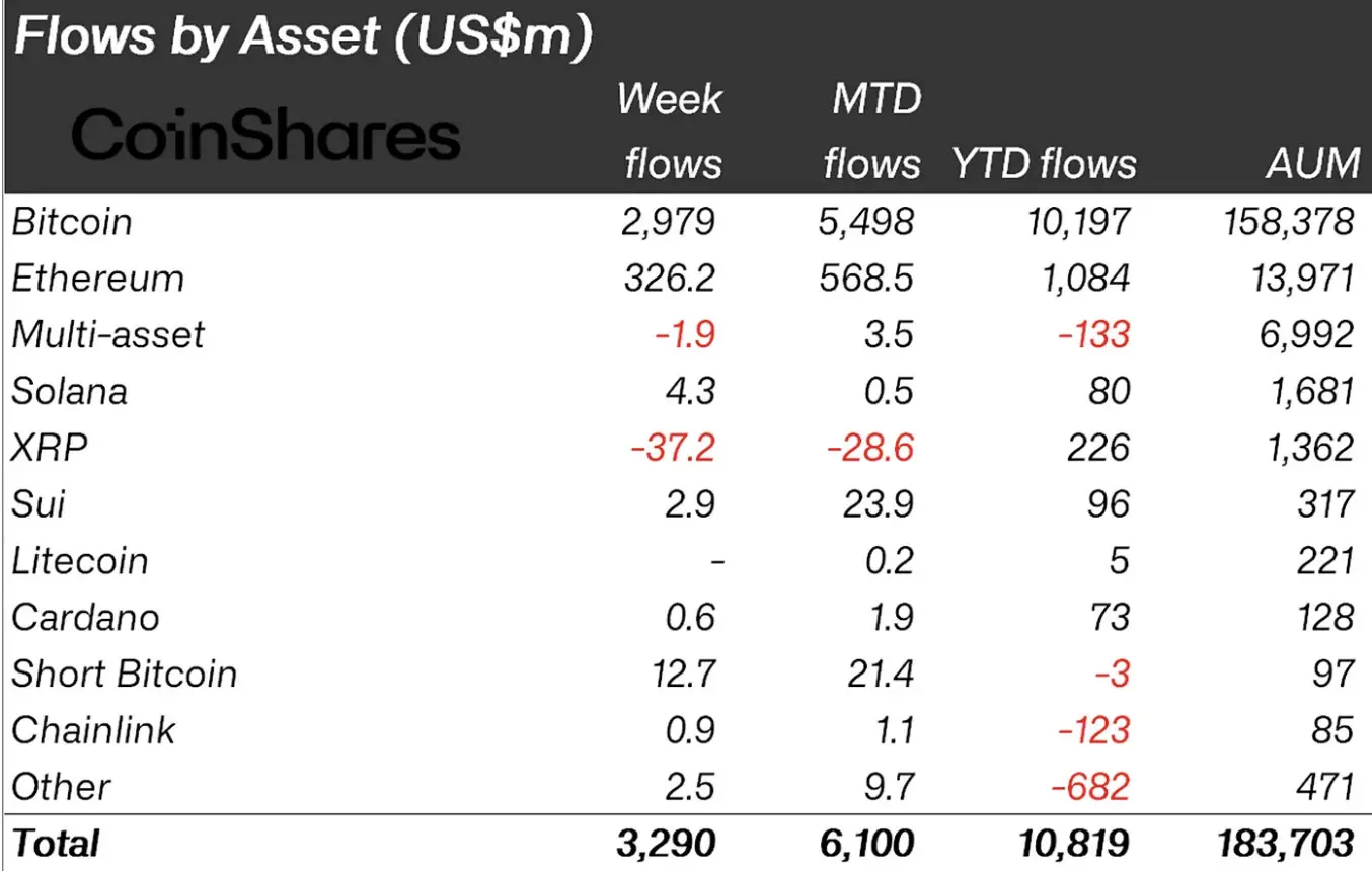 加密货币投资产品每周流入资金33亿美元,连续六周达到105亿美元,并推动今年迄今总额达到创纪录的108亿美元。