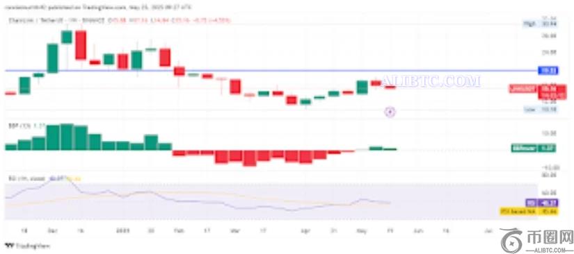 支撑指标发出的信号好坏参半。BBPower(牛熊力量)读数为1.37,表明买方略占主导地位。然而,由于缺乏更高的高点或持续的上涨动能,这一信号缺乏确认性。