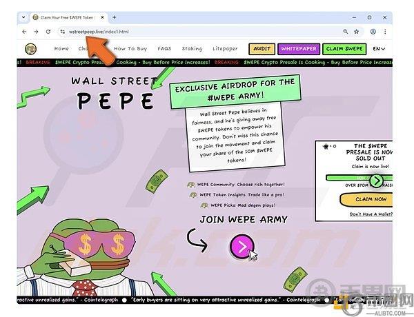WEPE 空投****了该**的官方网站,通过空投奖励诱惑用户连接钱包,并在用户不知情的情况下诱导其签署恶意合约,从而盗取其资产。
