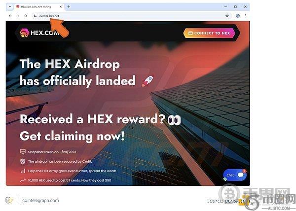 假冒的 HEX 网站**仿造了官方页面。该空投与真正的 HEX 项目毫无关系,属于彻头彻尾的**。一旦用户在该**网站上连接钱包,就会触发恶意合约,激活“抽水器”,将用户资金盗走。