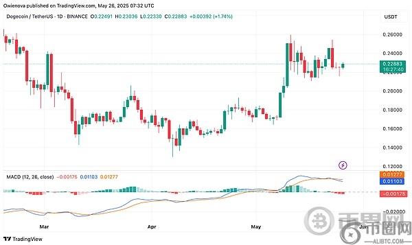 继比特币今日短暂上涨之后,狗狗币似乎因整体市场复苏而重新拾起上涨动力。狗狗币单日走势图显示,该模因币再次展现出强劲势头,有望实现关键突破。