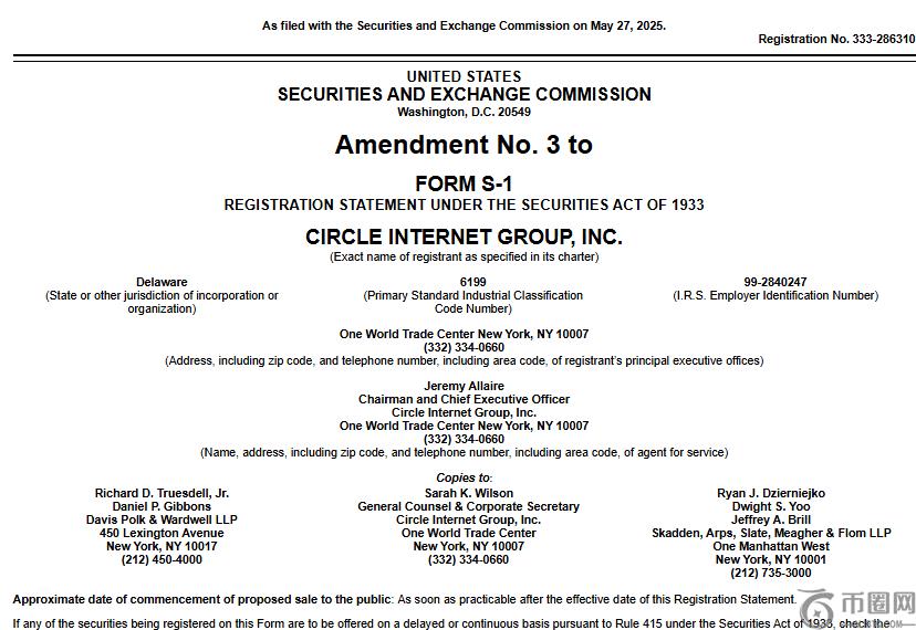 Circle 向美国证券交易委员会提交的 IPO 注册声明