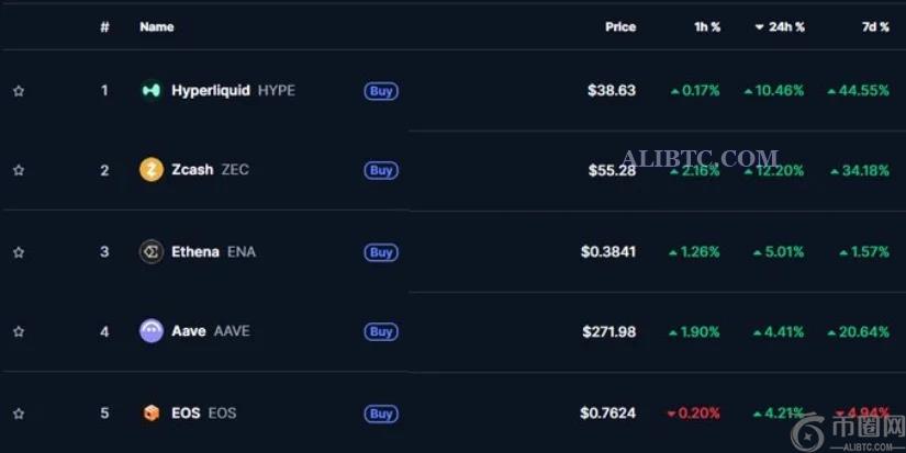 这一变化正引起广泛关注,Hyperliquid 的原生** HYPE 荣登每日涨幅榜榜首。24 小时内上涨 10.46%,本周涨幅超过 44%,涨幅正在快速增长。虽然加密货币排行榜经常变化,但看到像 Hyperliquid 这样相对较新的参与者超越老将,表明人们对该平台及其交易生态系统的兴趣日益浓厚。