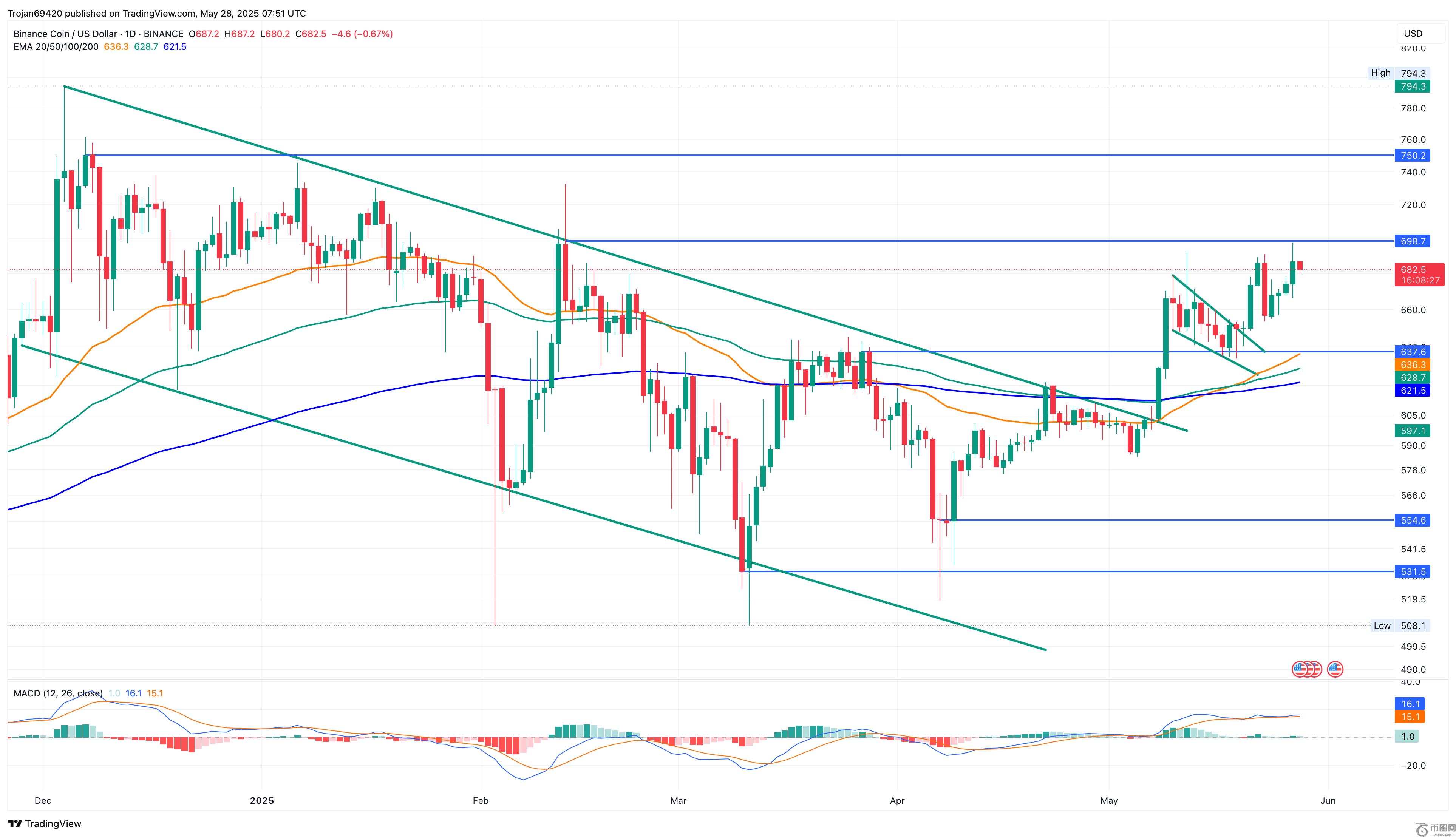 文章标题:币安币(BNB)接近 700 美元阻力位:下一个阻力位是 750 美元吗?